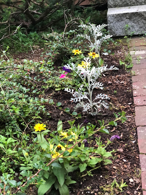 I just planted these flowers below. Hopefully, they will fill out soon and obviously I need to weed. Yikes!